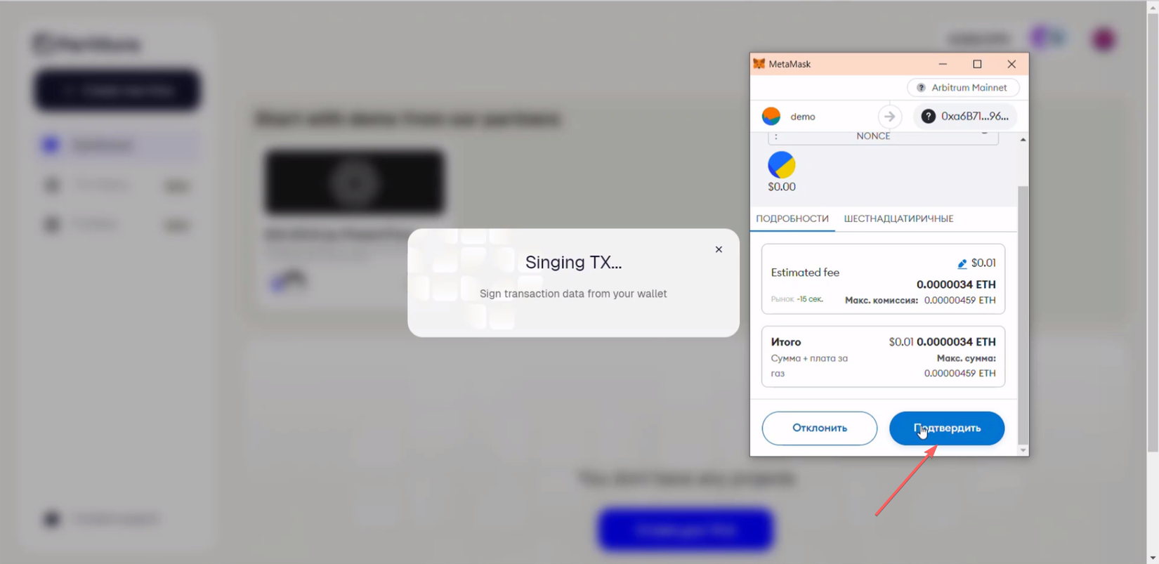 7. Then sign a transaction through your wallet